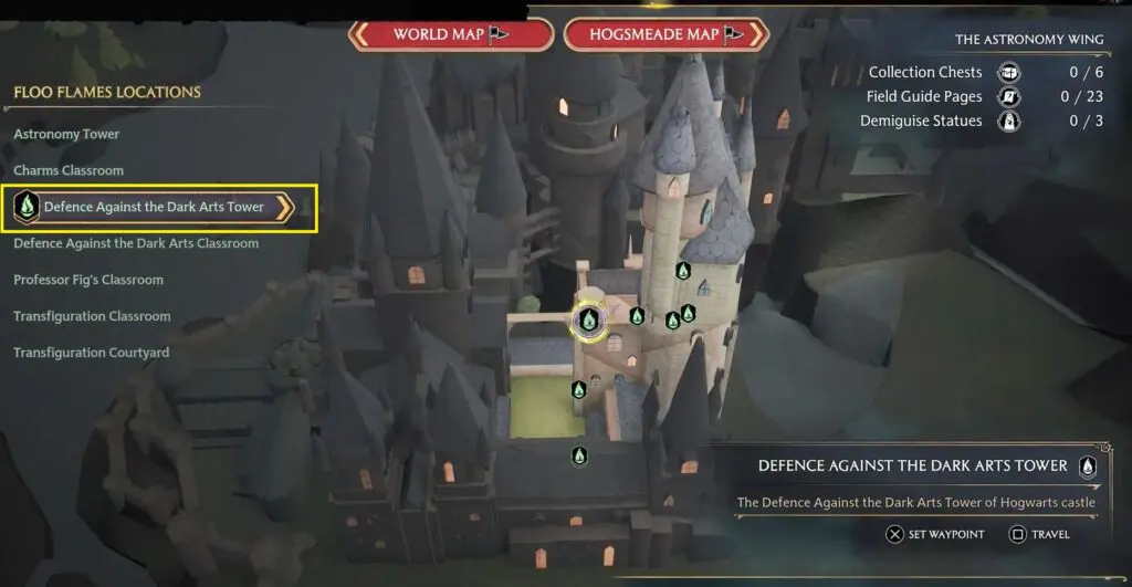 The Astronomy Wing > Defense Against the Dark Arts. Go one floor above the Rihno Skeleton to find it near a fast travel point.