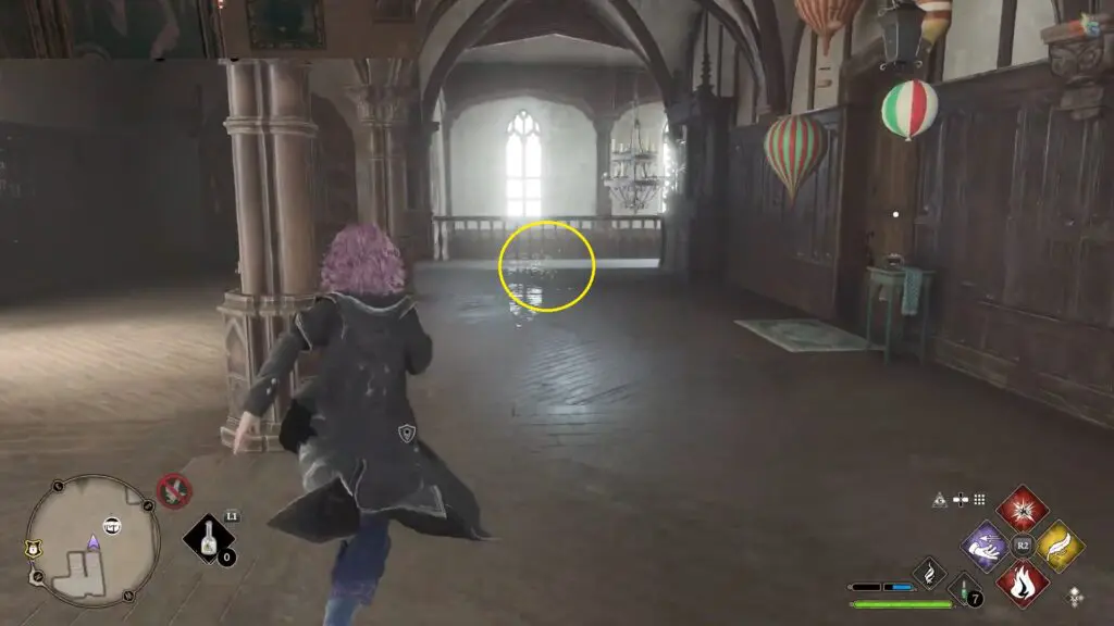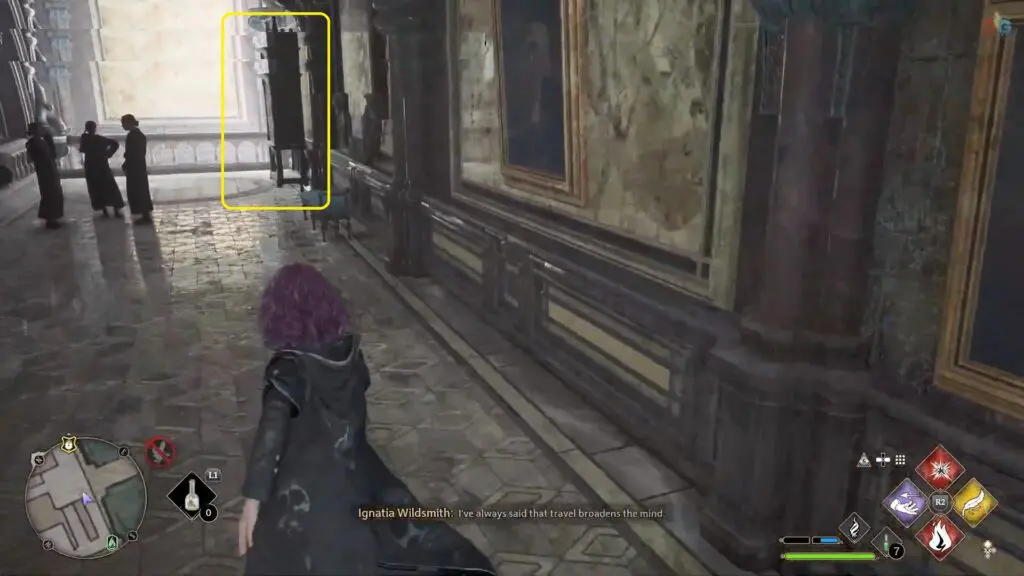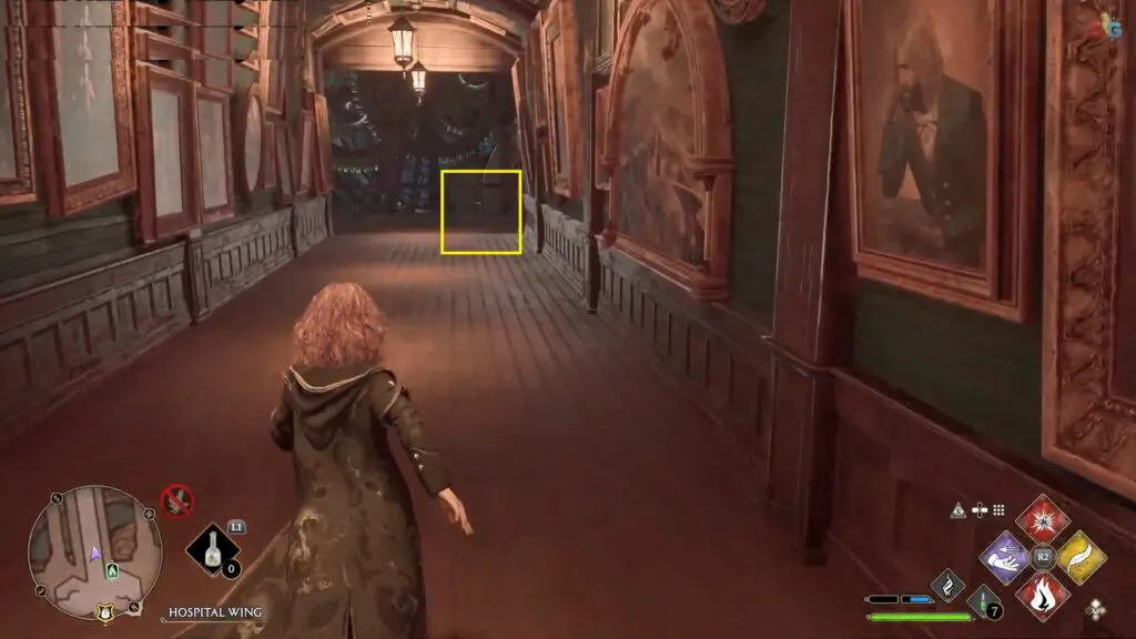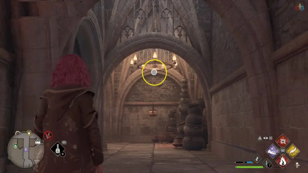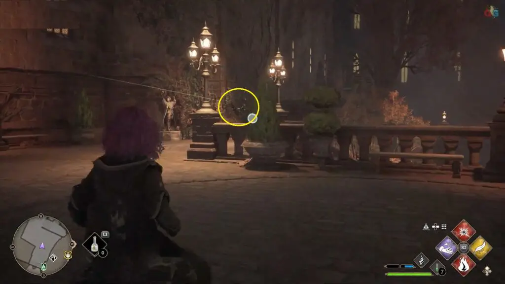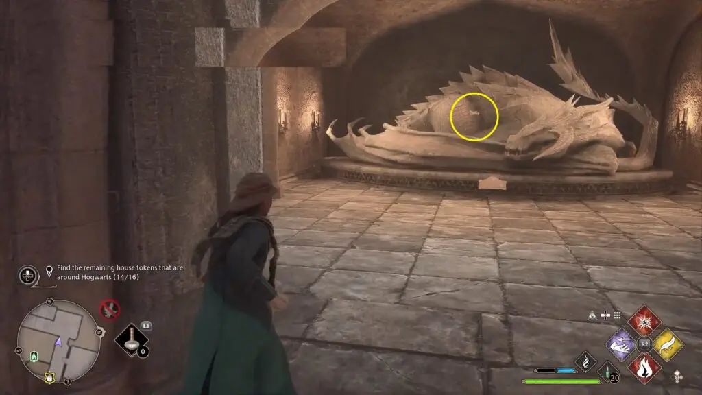 Next to the dragon statue as you come back to Hogwarts castle from the Map Chamber.