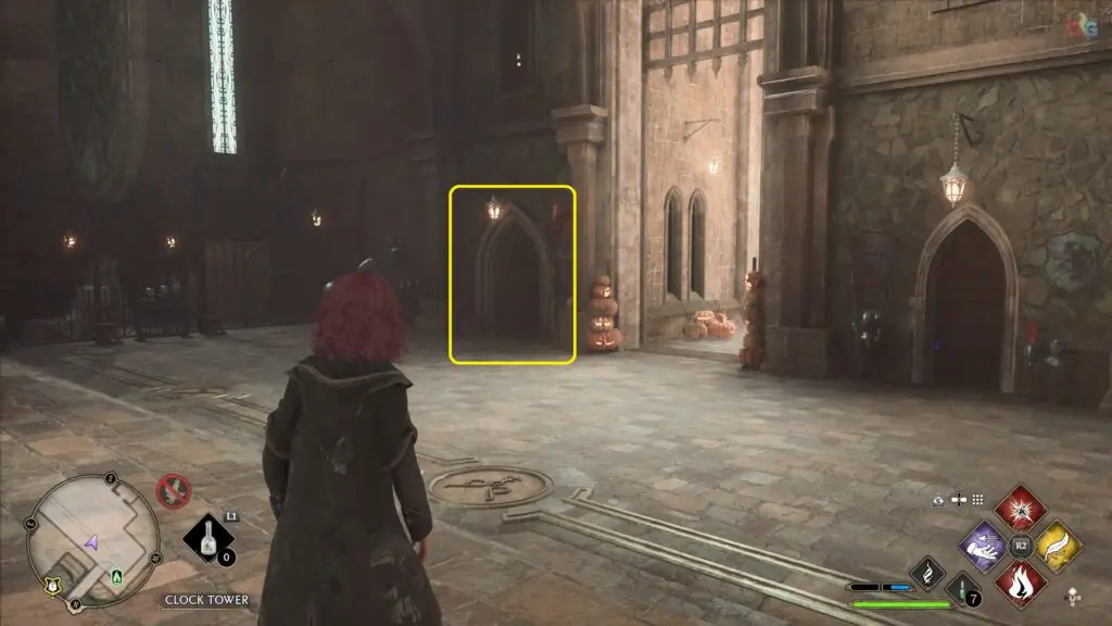 The key is near a fireplace in the Great hall.