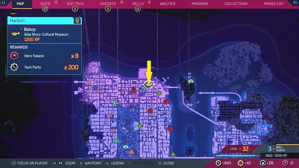 This guide shows the location of all 2 Cultural Museum Missions and how to complete them in the Spiderman 2 game, which released on 20 October 2023. They can be played only as Miles. It first unlocks after Main Mission 14: Funky. If the mission is not available in your game, that means you need to progress further in the main story. Completing all Cultural Museum Missions unlocks the My Community trophy and City Sounds suit.