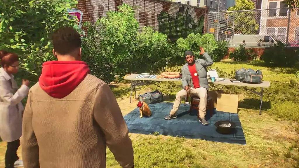 Follow the marker to reach the park. Search the park for the trumpet player. You will find him on the corner of the park as shown in the picture below.