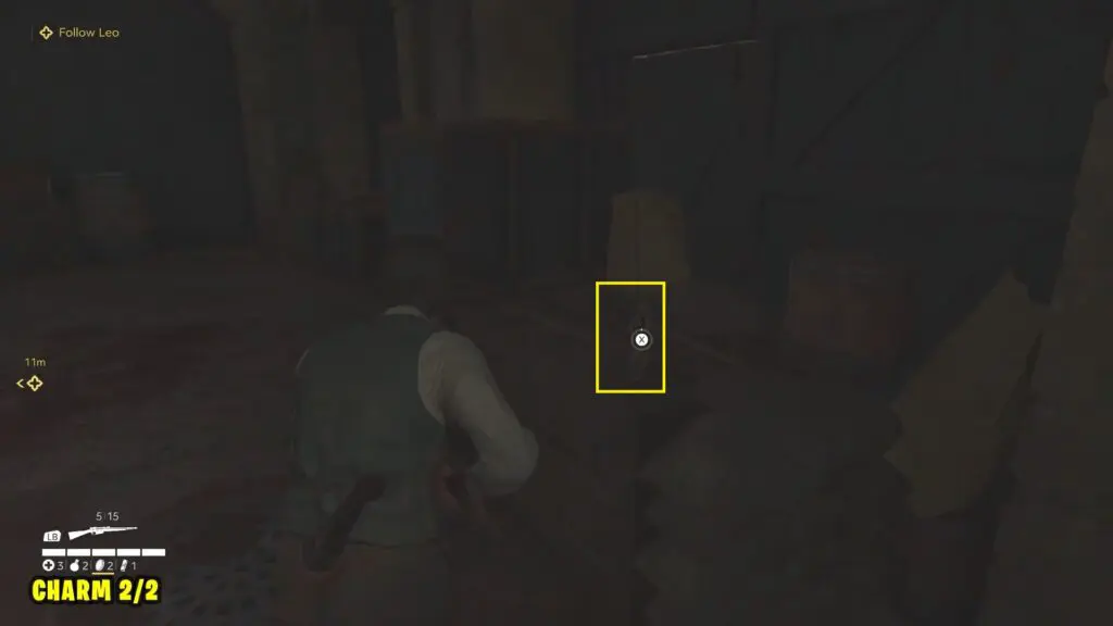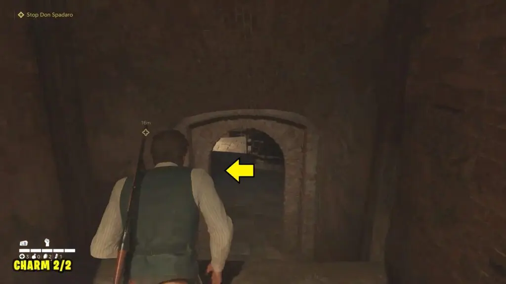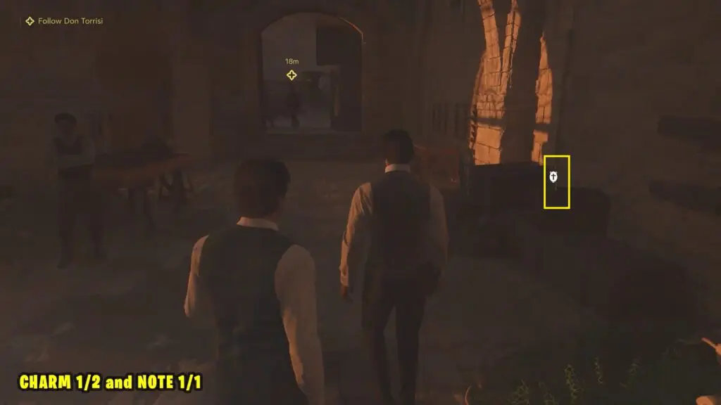 Proceed to the “Free Giuseppe” objective. You’ll find Charm #1 in front of his cell in the basement.