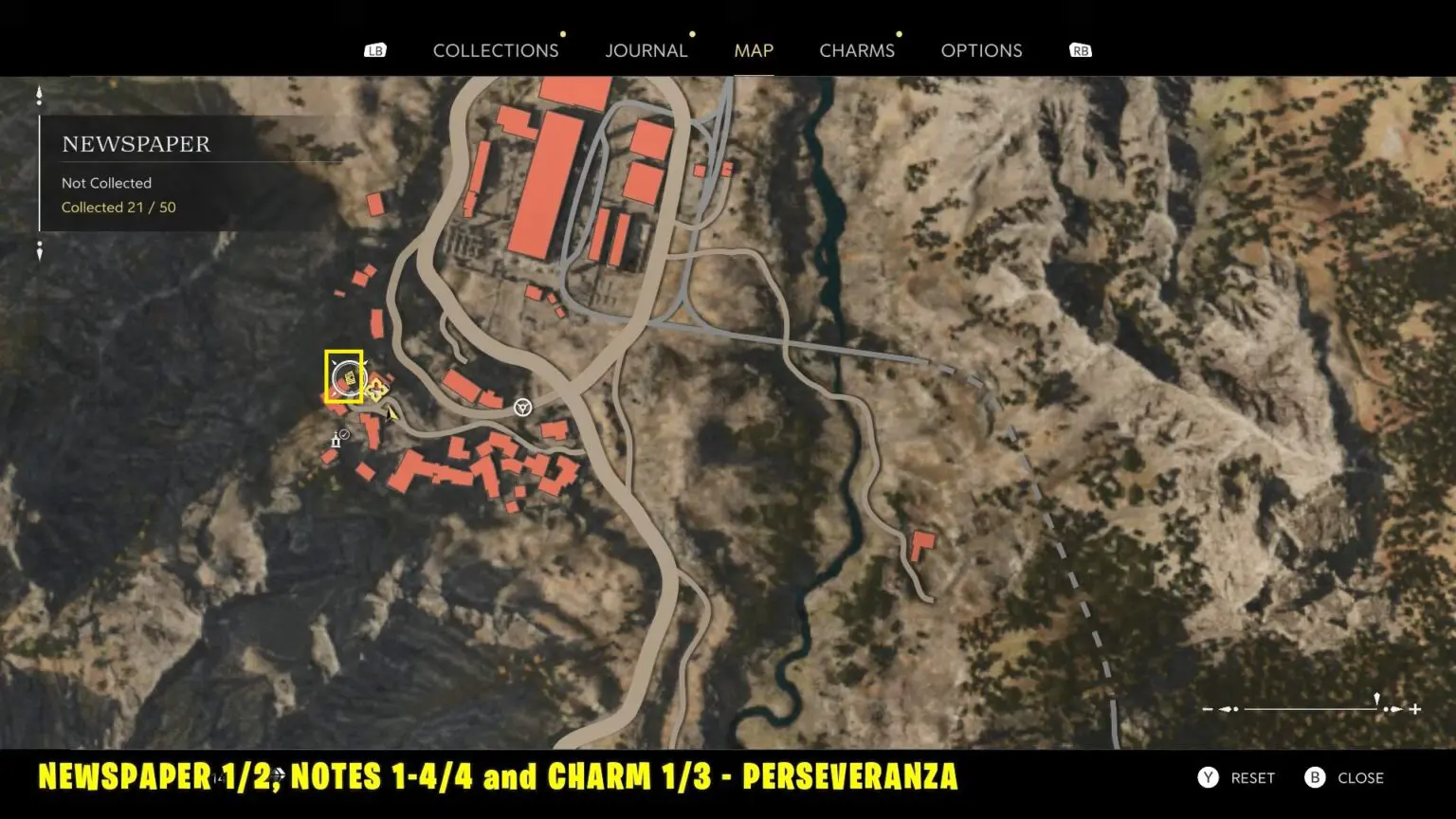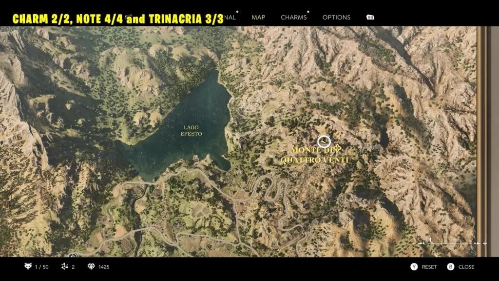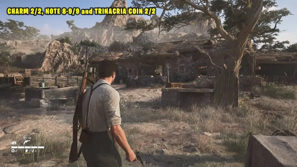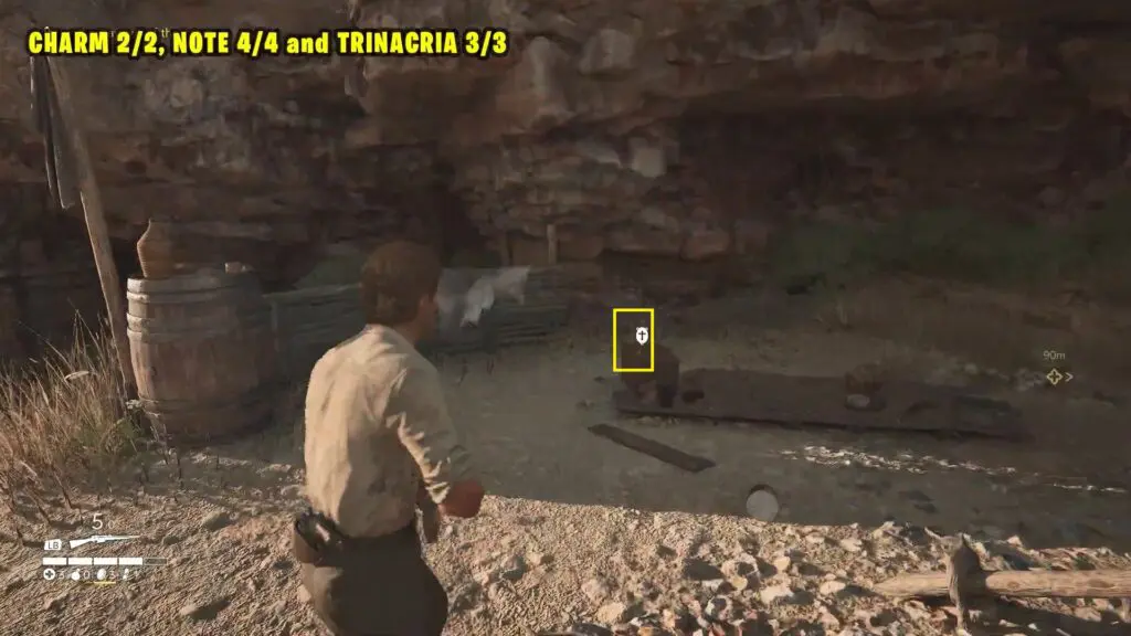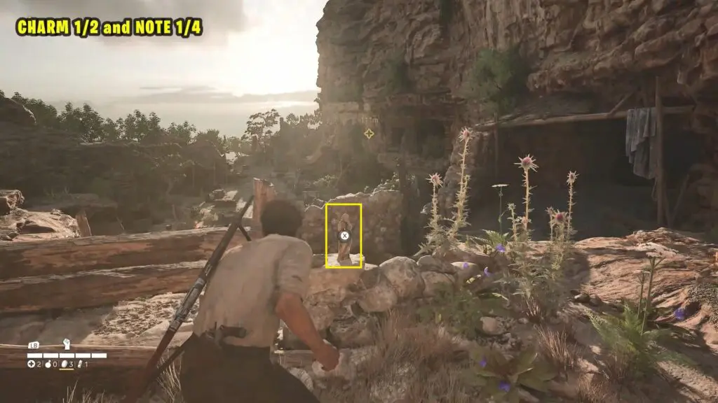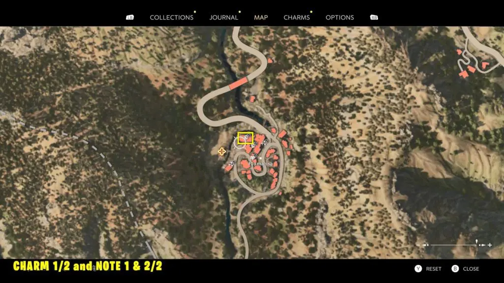 Follow the main story to reach the water pump, where you’ll need to drive out the bandits. Once the area is clear, enter the ruined building to find the Charm in the middle of the room.
