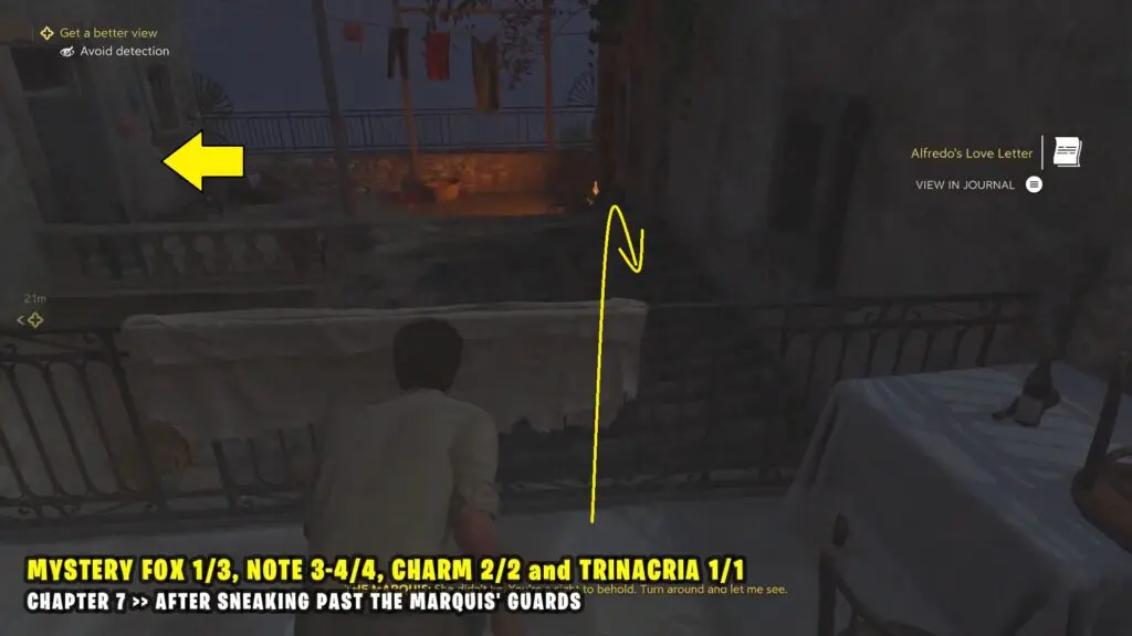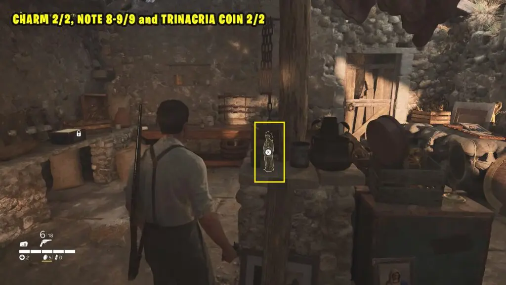 Leave the room through the balcony and jump onto the lower roof to reach the next room on the left. Inside, you’ll find Charm #2.