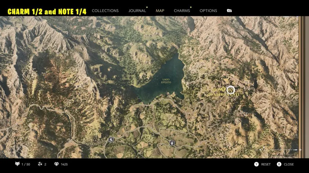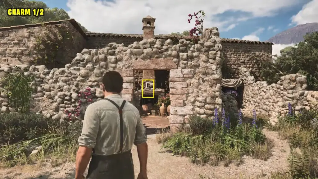 At the start of the chapter, your first objective is to meet Luca at the stable. Before heading there, visit the garden to meet Isabella (secondary objective). Once you arrive, a cutscene will trigger. After the cutscene, check the fireplace on the right to collect a Charm.