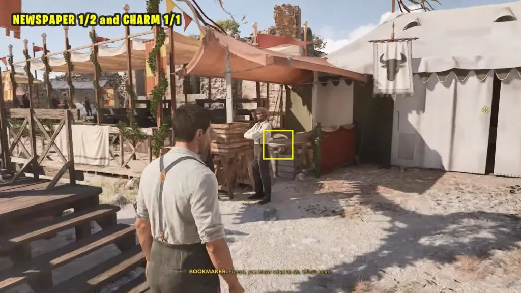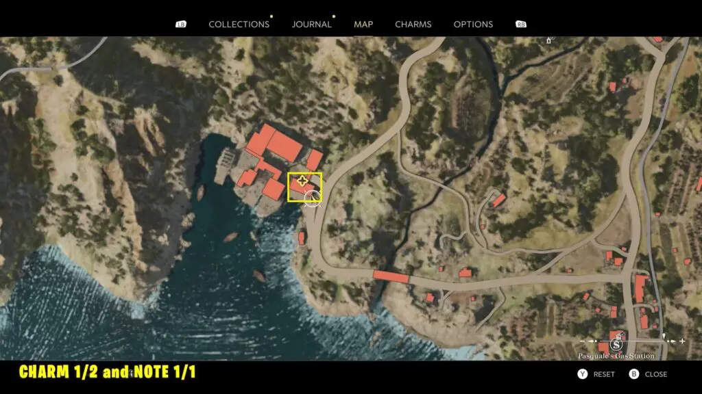 Follow the main story to reach Gennaro. You’ll find Charm 2/2 on top of a wooden box in front of where Gennaro is tied up.
