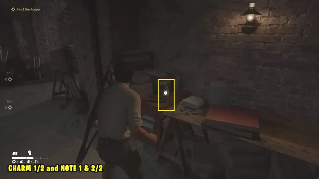 In Chapter 1, after cleaning the stable, return to Ceaser. He will tell you to return to your room to get ready for the meal. On the way, talk to Father Ciccone at the door, then go to your room. On the table, you will find the Note from Father Ciccone and a charm.