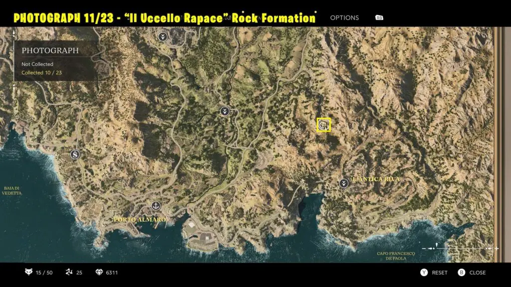 Head to the location north of L’Antica Riva, refer to the marked location on the map, and take a picture of the Rock Formation.
