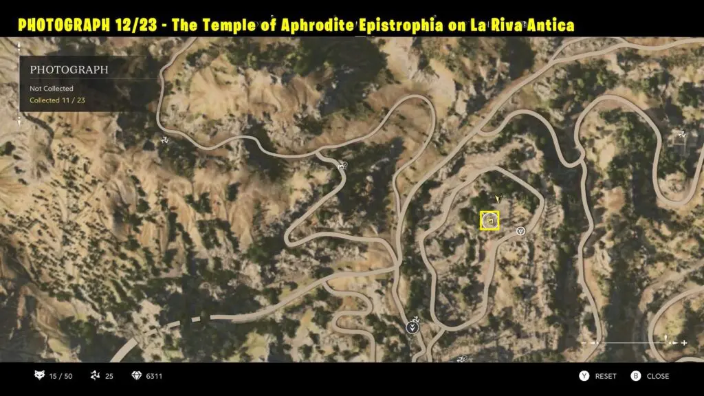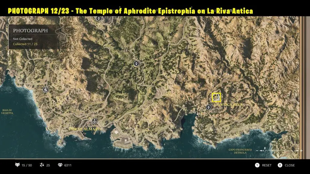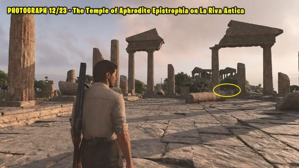 Head to the location in L’Antica Riva, as marked on the map. Take a picture of the Temple of Aphrodite Epistrophia from the marked spot.