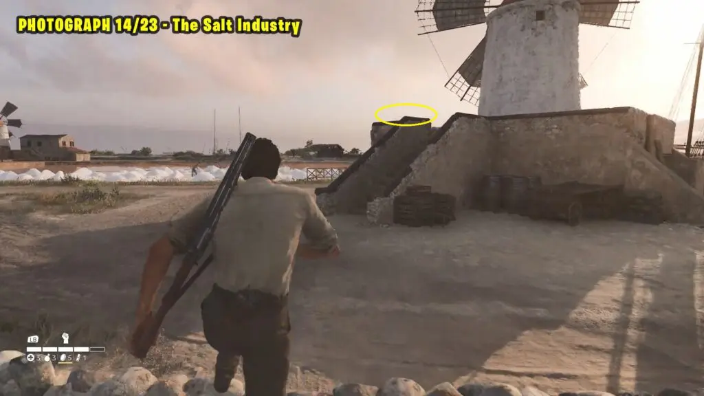 Head to the location east of Porto Almaro, as marked on the map. Take a picture of the salt drying while standing near the windmill.