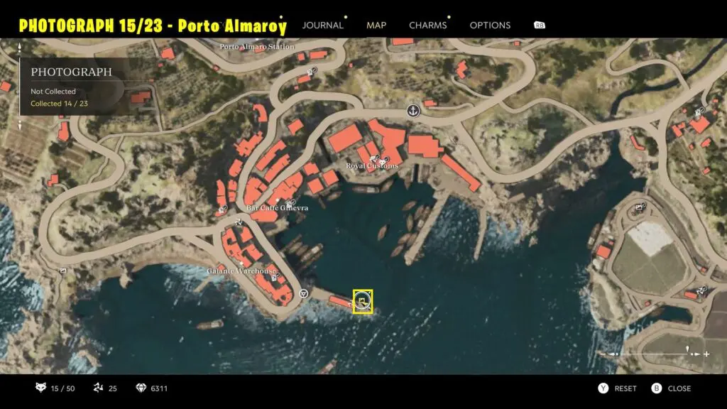 Head to the edge of the dock at Porto Almaro, as marked on the map. Take a picture of the Porto Almaroy.