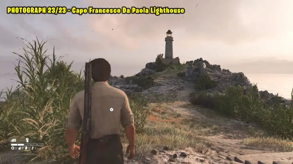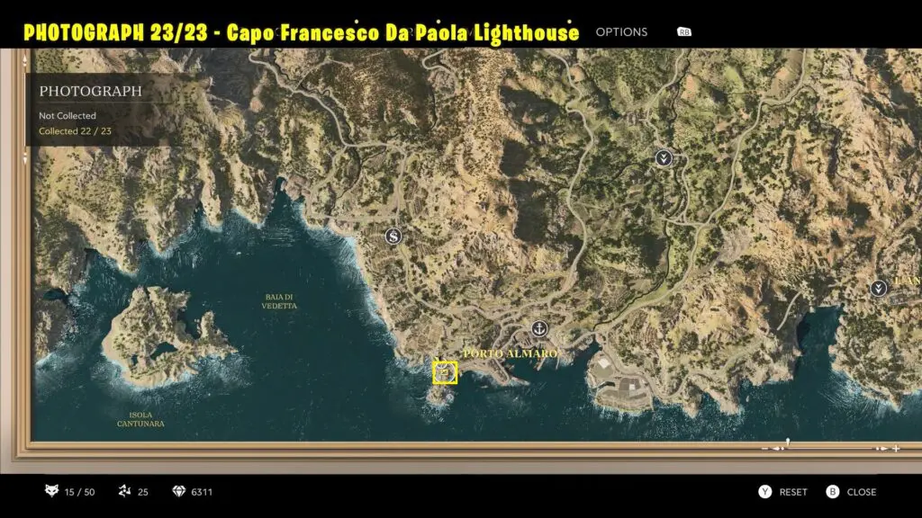 Head to the southwestern part of Porto Almaro, as shown on the map, and take a picture of the lighthouse from a distance.