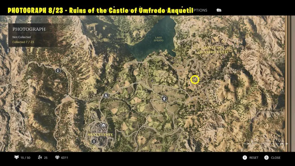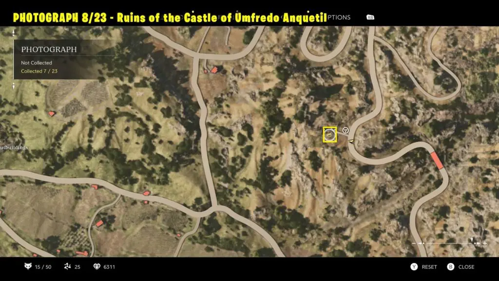 Head to the location marked on the map. Take a picture of the castle ruins from the flat platform outside the castle.
