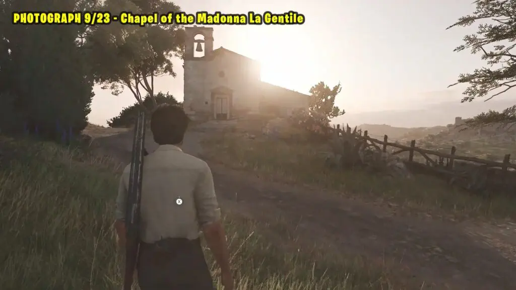 Head to the location marked on the map. Take a picture of the Chapel of the Madonna La Gentile. The photograph location is outside the castle on the left side of the approach road.