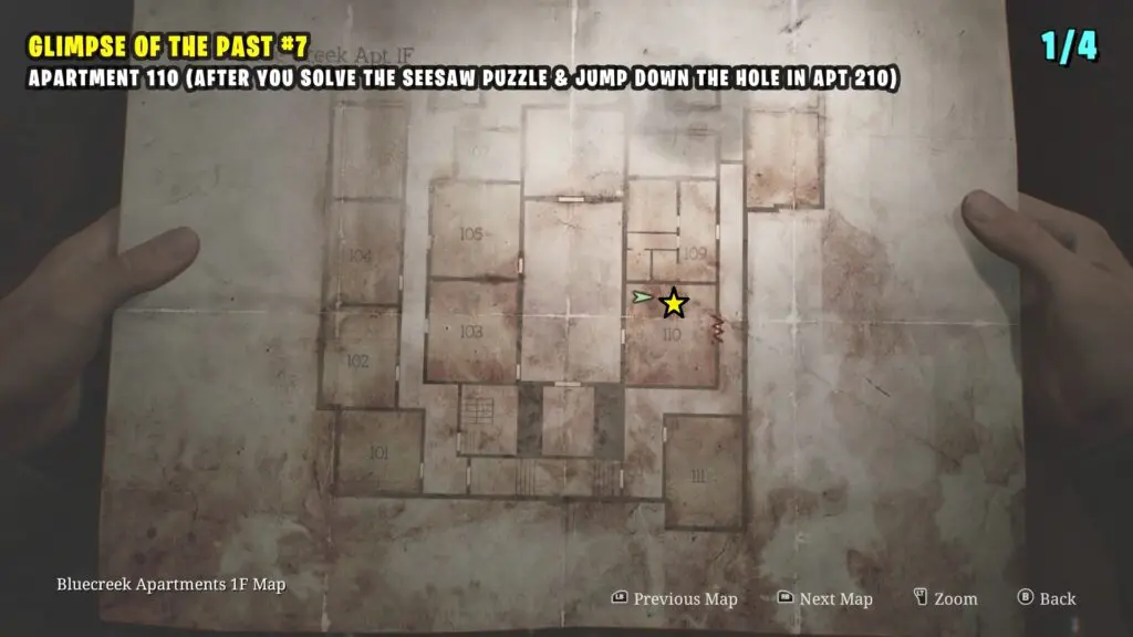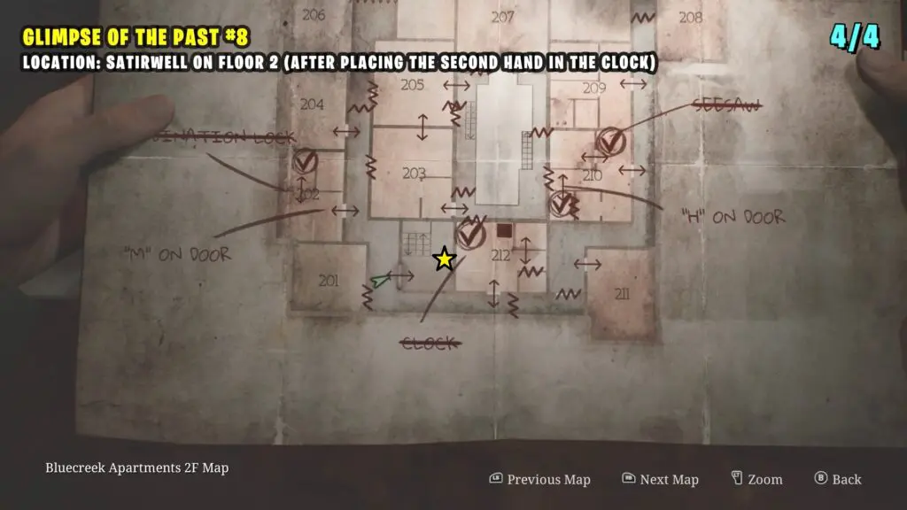 Go upstairs and enter Apartment 213. Check the scratched wall in the bedroom to collect Glimpse of the Past.