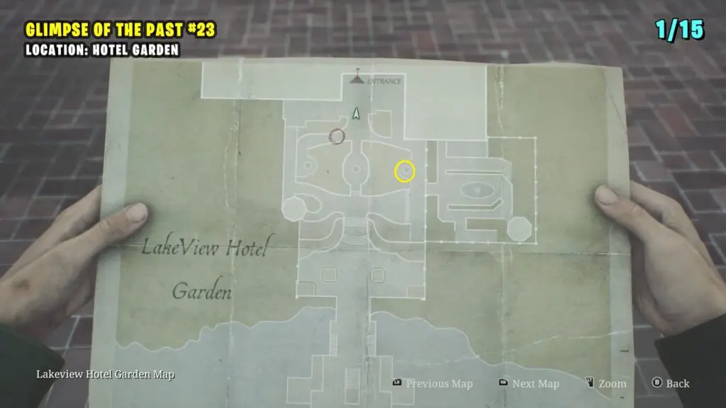 Enter the Lakeview Hotel Garden and check the small fountain on the eastern side to discover a Glimpse of the Past.