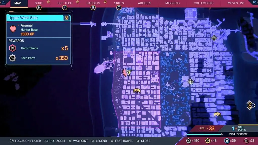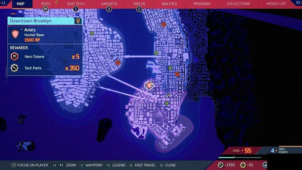 This guide shows the location of all 4 Hunter Bases in the Spiderman 2 game, which released on 20 October 2023. Completing all Hunter Bases unlocks the Seek and Destroy trophy and the Hunt Suit. A Hunter Base will be marked on the map once you have completed all Hunter Blinds in the area. Click here for locations of All Hunter Blinds. Enter a base, defeat all the hunters there, and then download hunter data to complete the base.