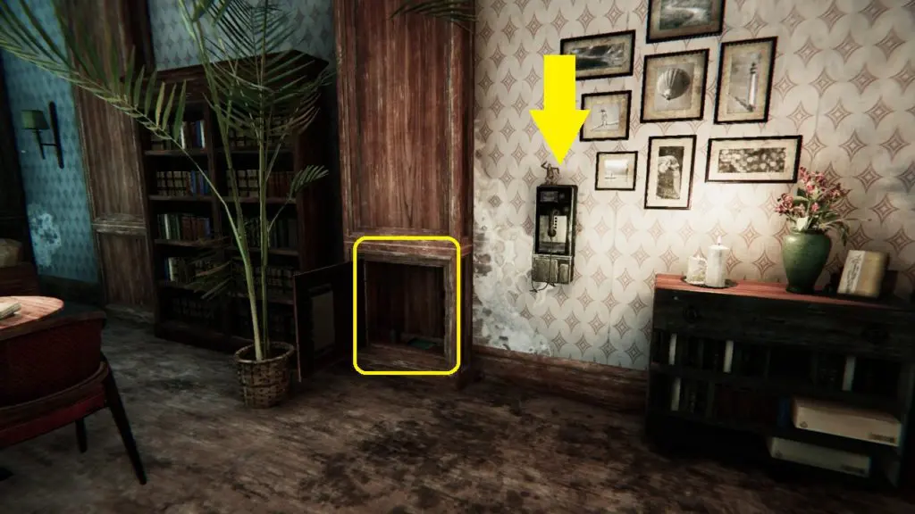 Attach both hands to the toy Monkey above the phone in the hotel lobby. This will unlock a cabinet on the left side of the phone. The book is inside it.