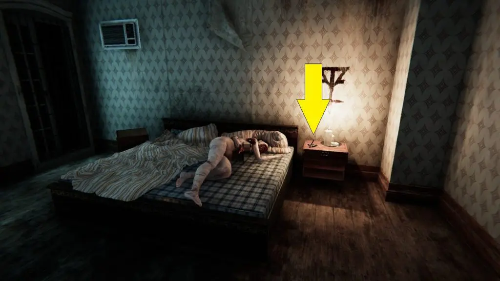 In the bedside table of the room adjacent to yours (207). You will enter this room while fleeing from yours through the window.