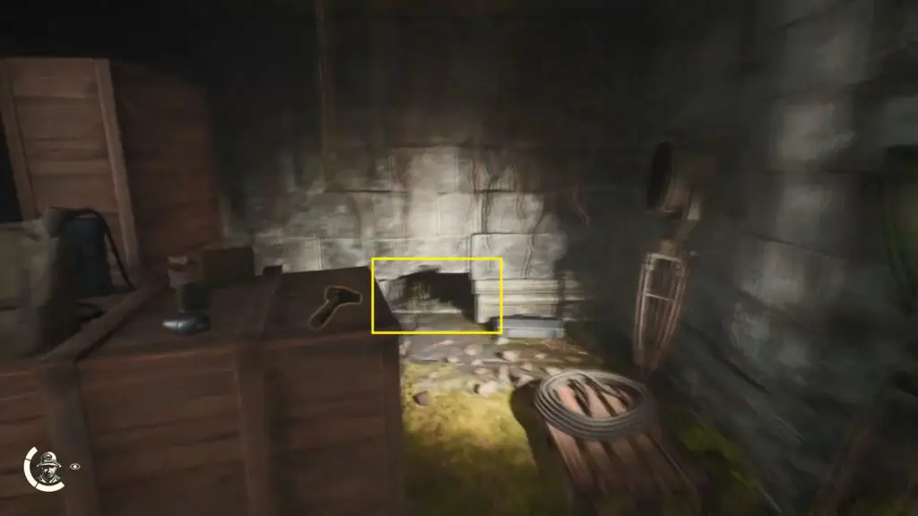 Once inside, you’ll see some wooden desks. Look to the left of these desks, and you’ll find a hole. Crawl through it, and on the other side, you’ll discover the first artifact!