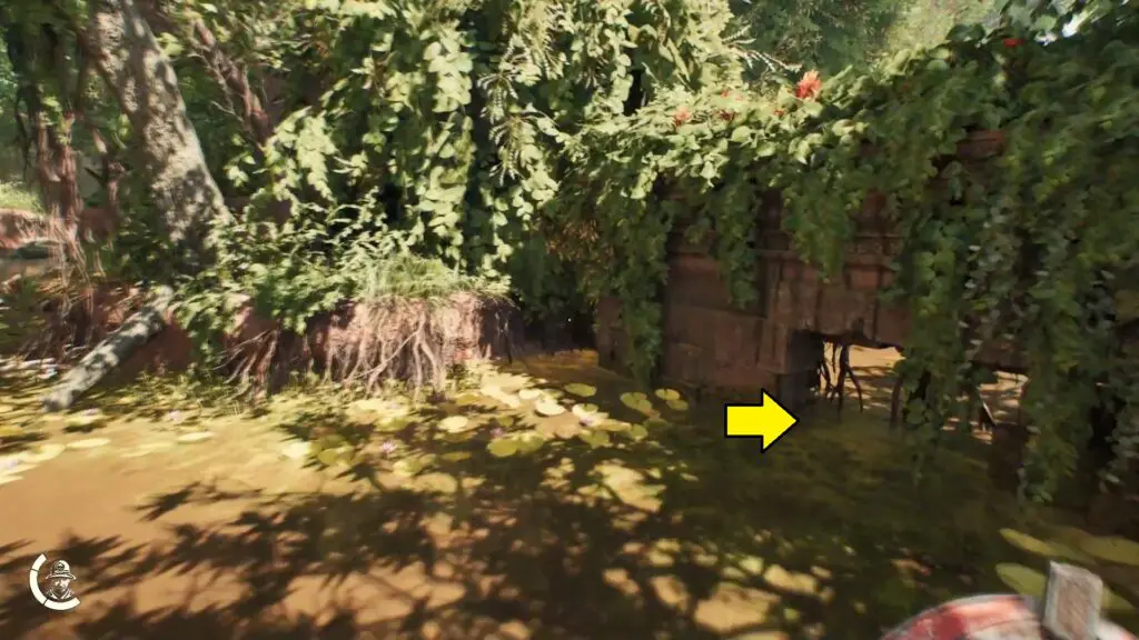 Head to the spot marked along the river, southeast of Tongdang’s Hut. Walk along the riverbank until you find a small opening in the wall.