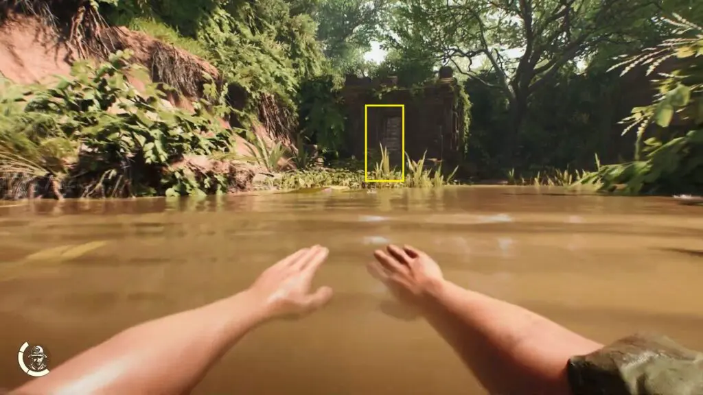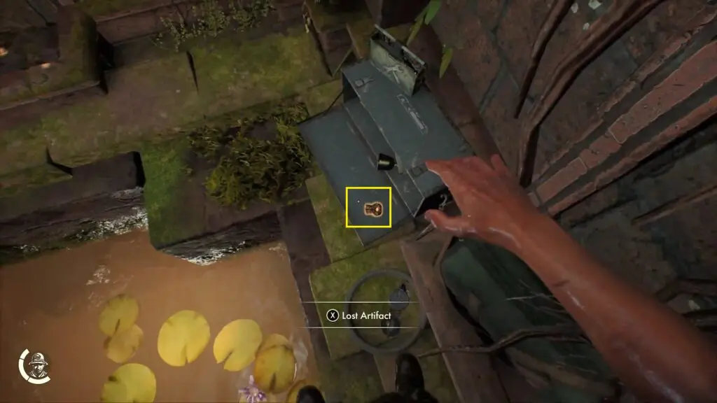 Crouch down and crawl through the hole to get to the other side. Once on the other side, clear the blockage from the door on your left to open it. Enter inside and drive in the water, and after you emerge from the water, you’ll find the artifact on the other side.