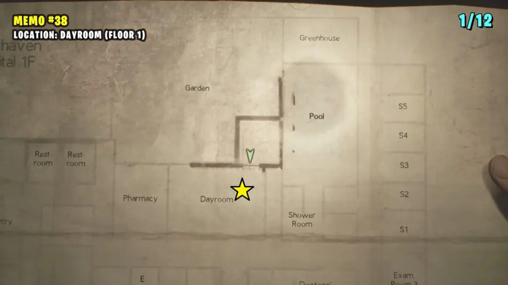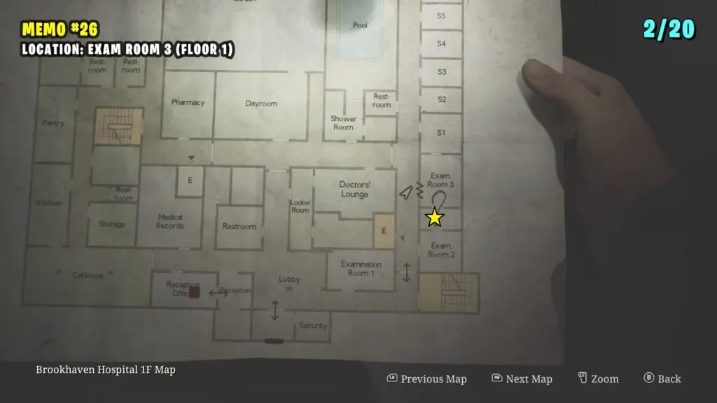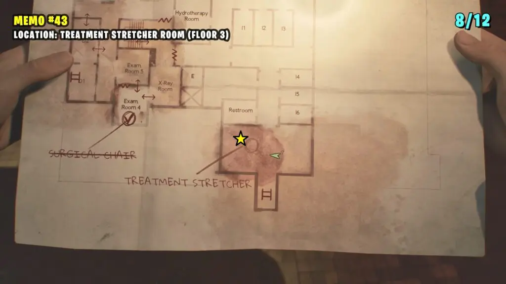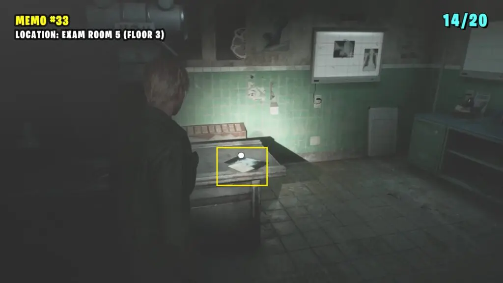 Inside Exam Room 3, break the window to climb in and go into the next room to find the memo inside a desk drawer.