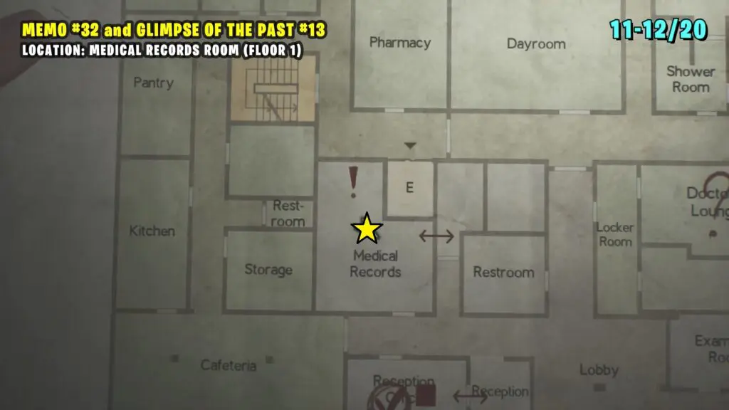 Memo #32 is on the ground inside the Medical Records