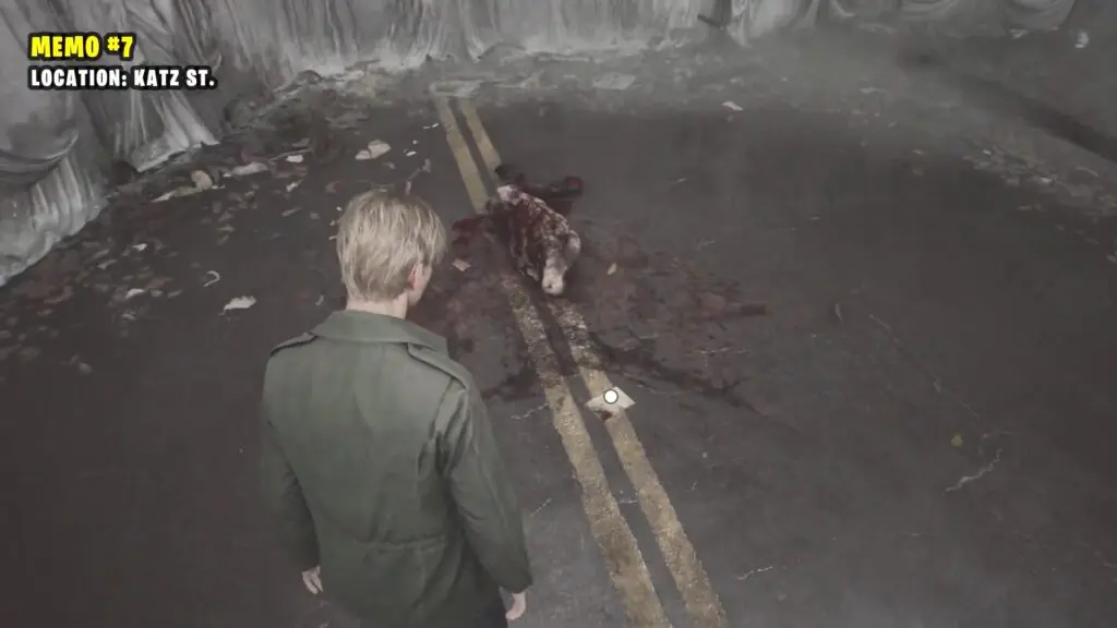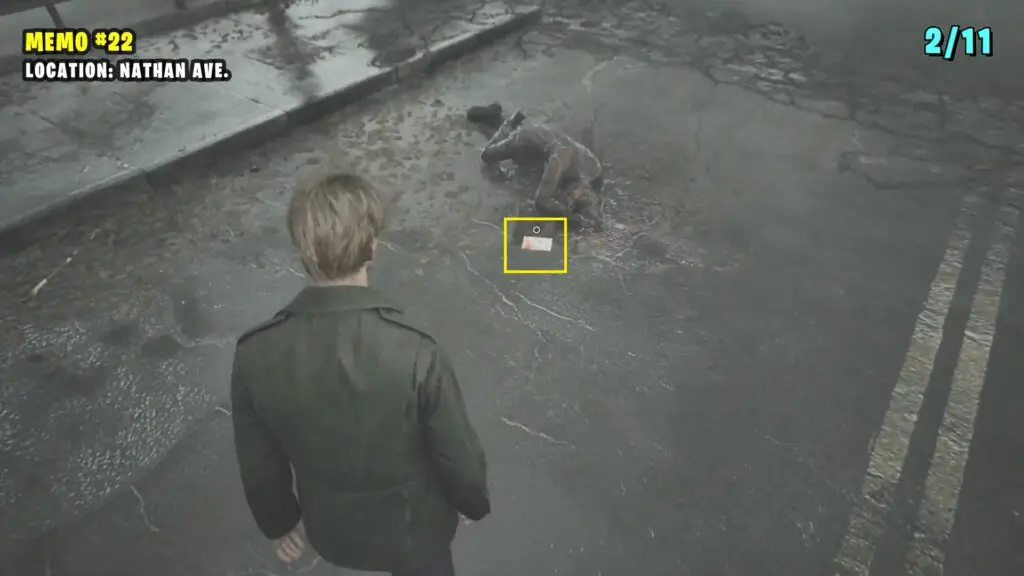 This memo is located directly in front of the previous corpse near the pavement.