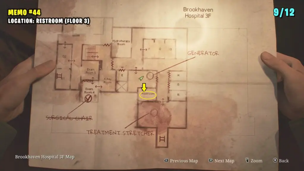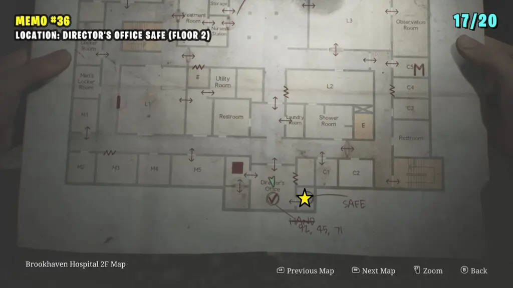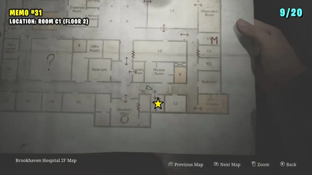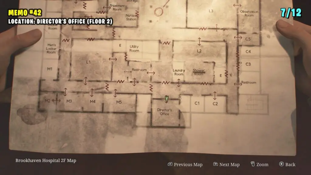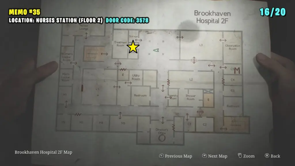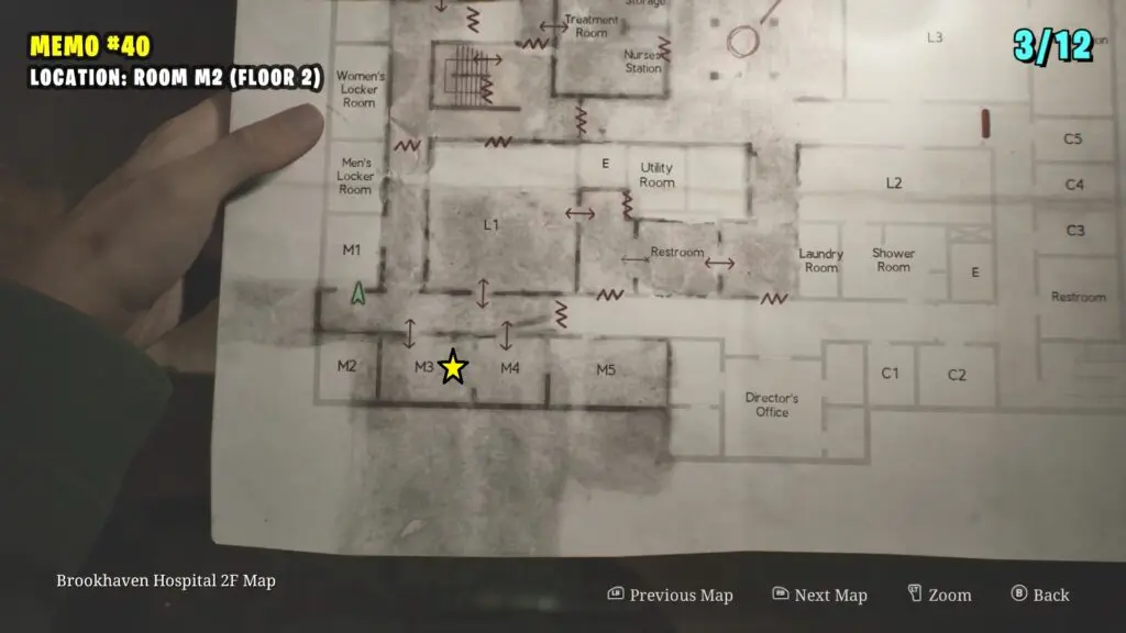 The patient’s Note is in the Observation Room, the player can retrieve a climbable box from Room L2. Follow the path shown on the map below to enter the Laundry room by breaking the Wall. Enter the L2 Room.