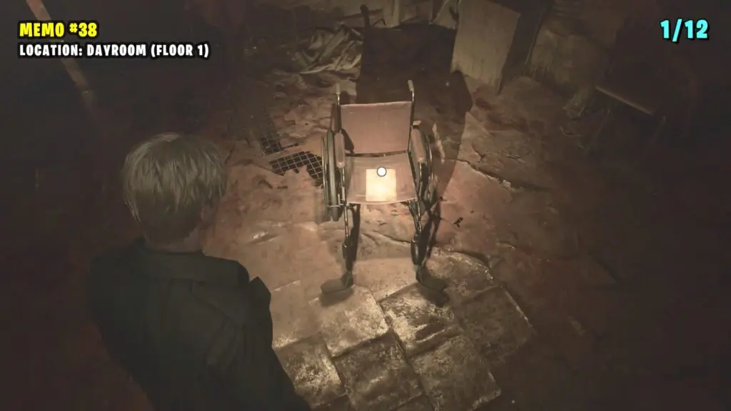 Enter the Dayroom and go through the first door to find this memo on a wheelchair.