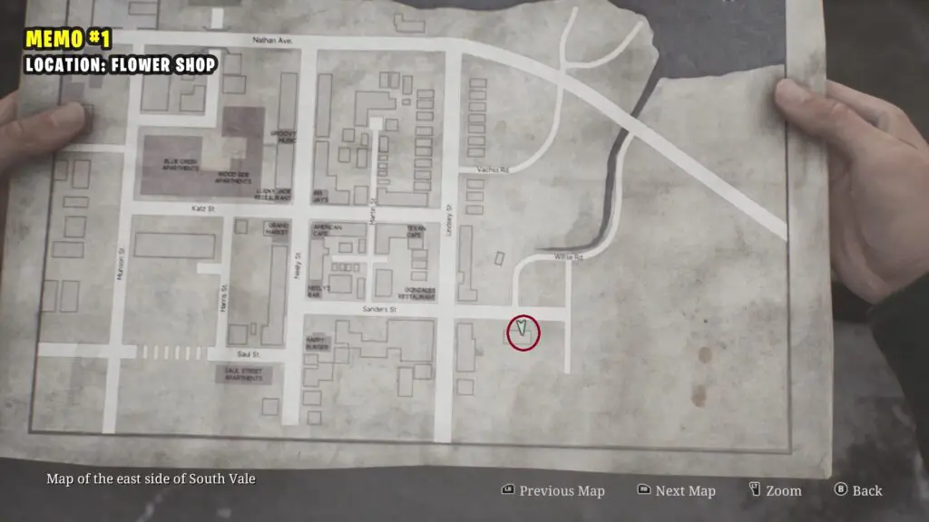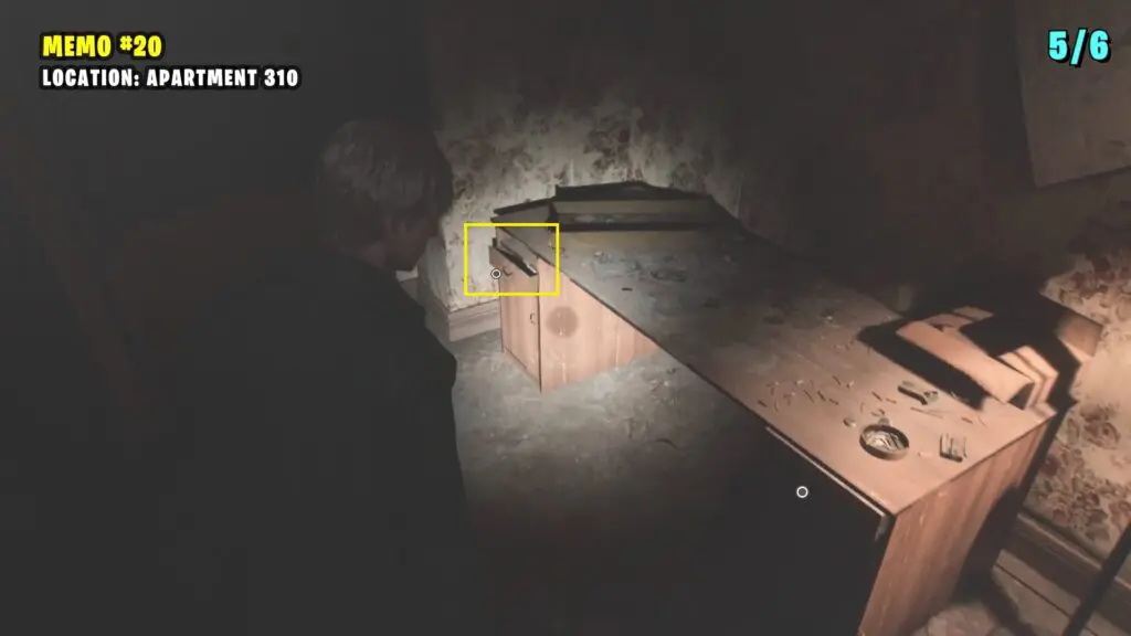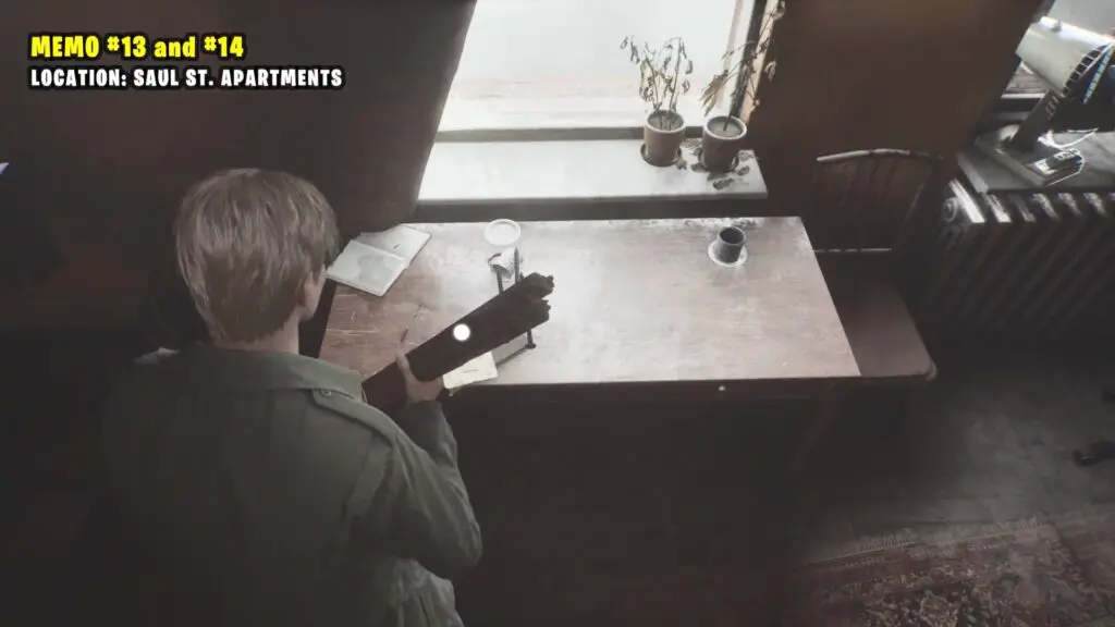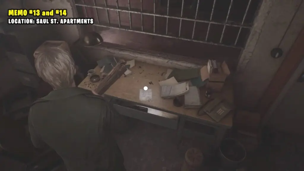Enter the Saul Street Apartments through the front door. Push aside the shelf blocking the second door on the right. Once inside, head to the adjacent room where you’ll find the memo on the table.