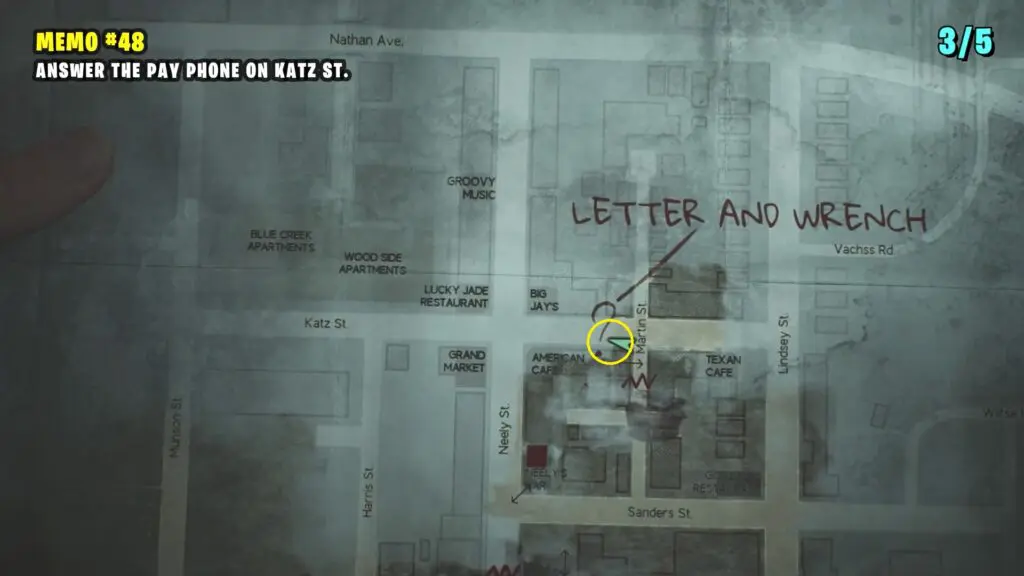 You’ll find the memo on the ground in front of the barricade at the end of Katz St