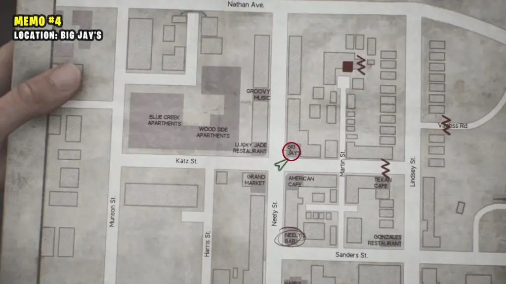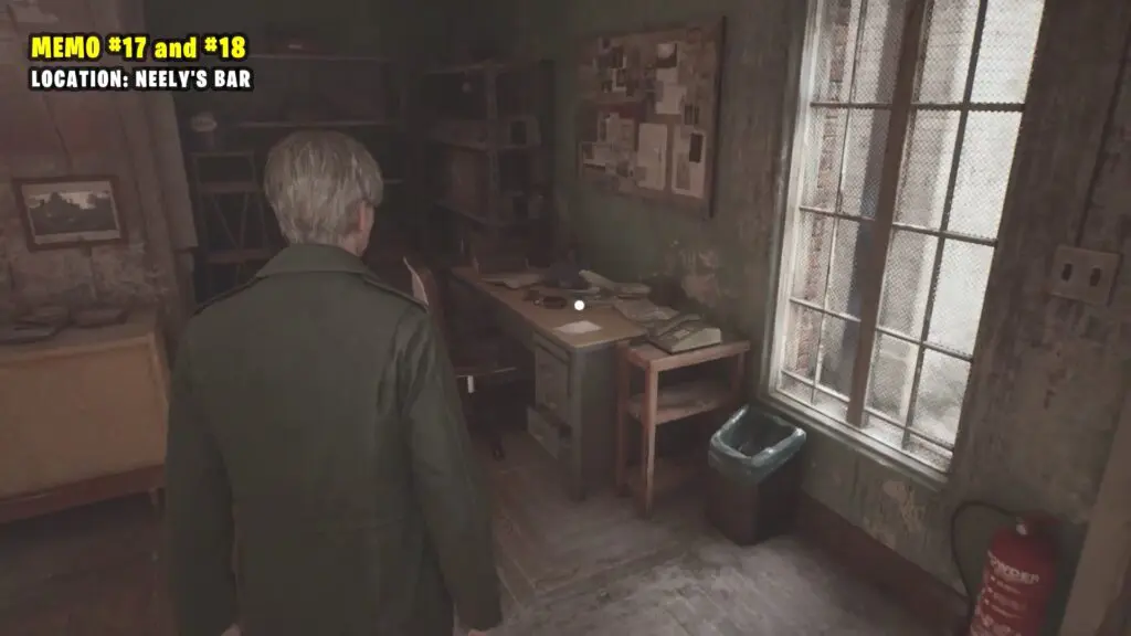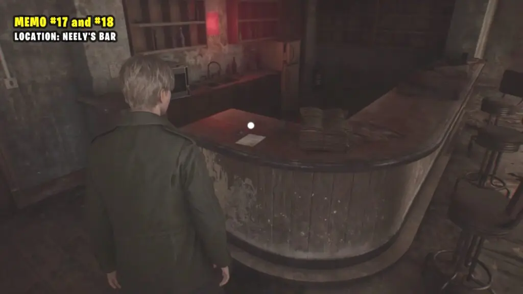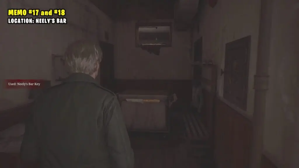 Inside the Neely’s Bar go through the locked door. Push the cart to the side and climb through the hatch at the top. In the room, you’ll see the memo on the table.