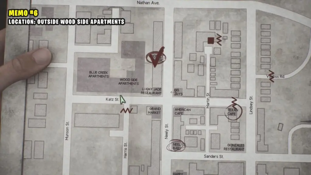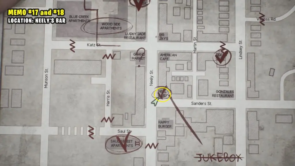 Head to Sanders Street and look for a truck. Next to it, you’ll find a corpse with two memos.