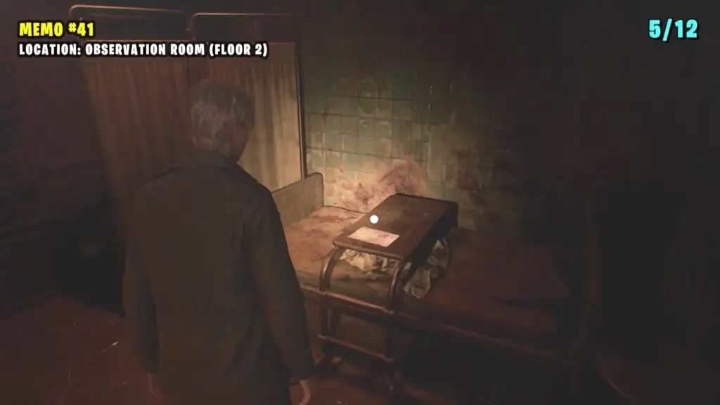 Enter the L3 room to access the Observation room to find Memo #41: Patient’s Note on a bed.