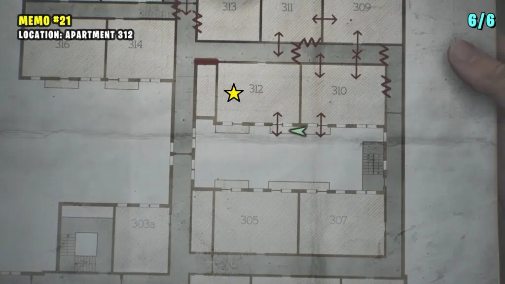 Go upstairs and crawl through the open vent on the floor to enter Apartment 7. You’ll find the memo on the table.