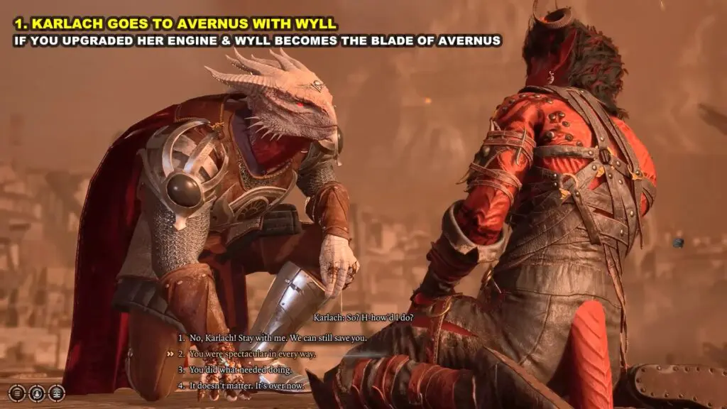 If you upgrade her engine but didn’t romance her & Wyll didn’t become the blade of Avernus.