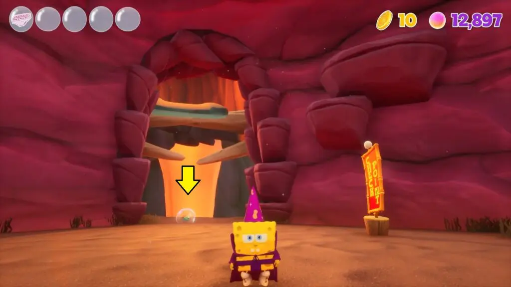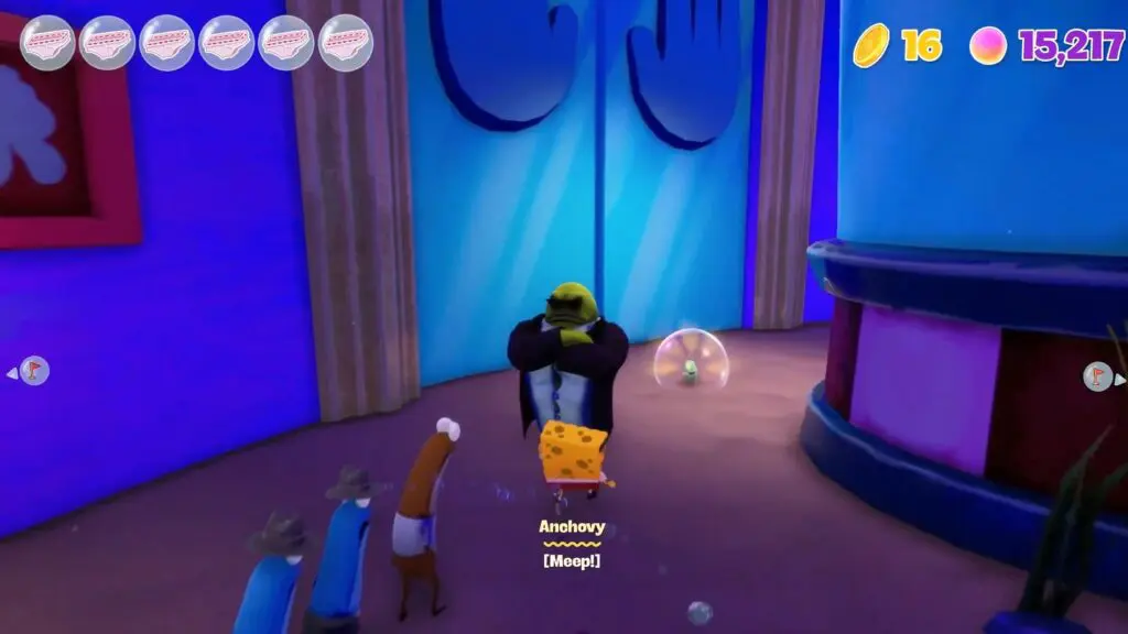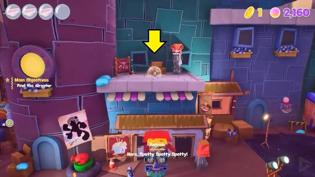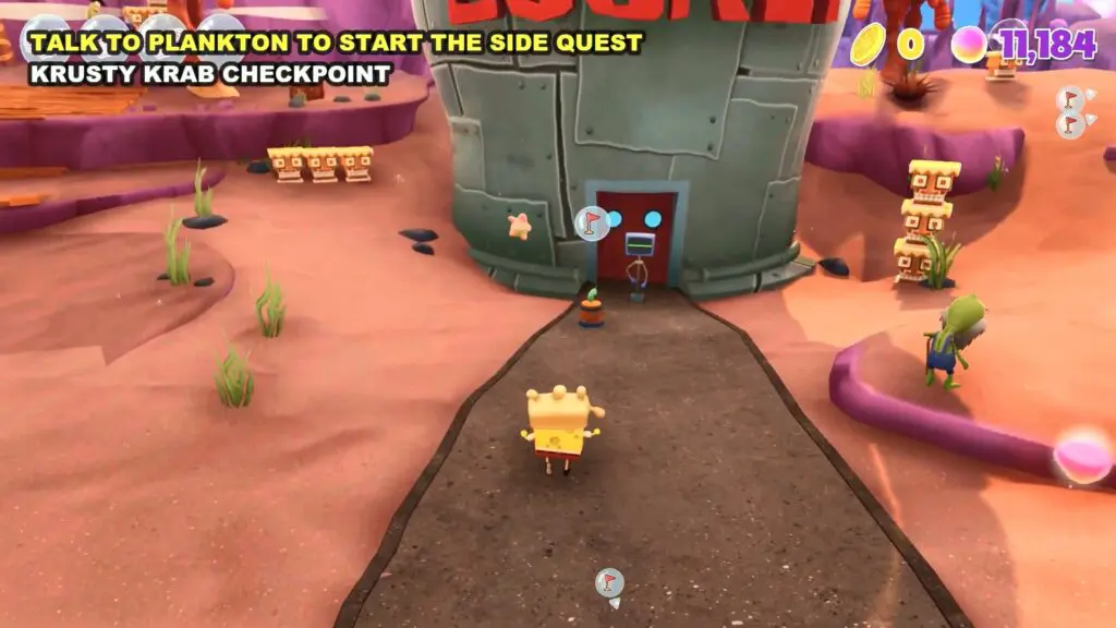 The spot is a microscopic organism, but he acts like a dog in the game. He serves as Plankton and Karen’s loyal pet. After finishing the Wild West Jellyfish Fields world and reassembling the Chum Bucket, you’ll be able to speak with Plankton. Plankton can be found at the Krusty Krab checkpoint. He will request you to locate their little pet.
