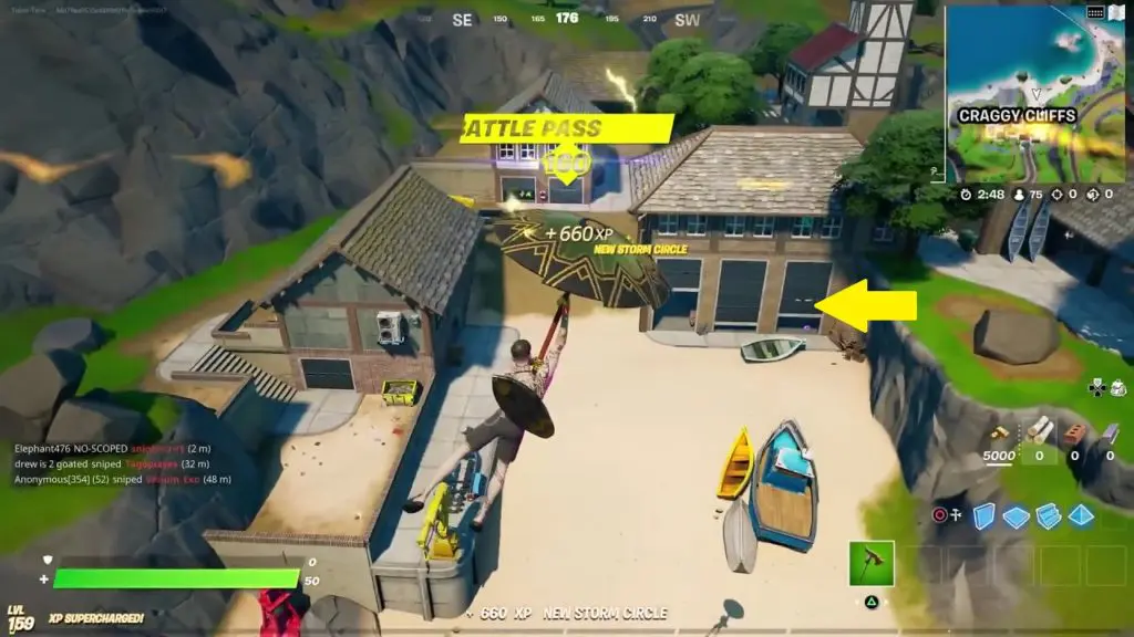 The fourth and final artifact can be found in craggy cliffs. Craggy cliffs are at the northmost portion of the map. The artifact is inside the house (See the picture below highlighted with an arrow) near the beach area with a few boats. Break the gate to get inside the house. The artifact is up on a canoe inside the house as shown in the picture below.