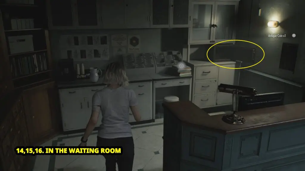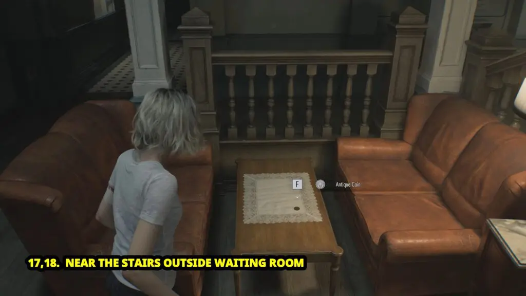 Antique Coin #17 is in the corridor outside the Waiting Room. Look for a table before you go upstairs to find the coin.