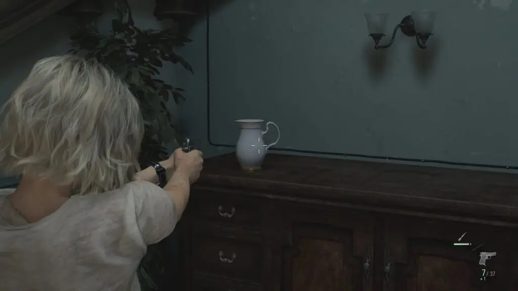 Antique Coin #18 is hidden inside a white vase near the stairs. Break the vase to reveal the coin inside.