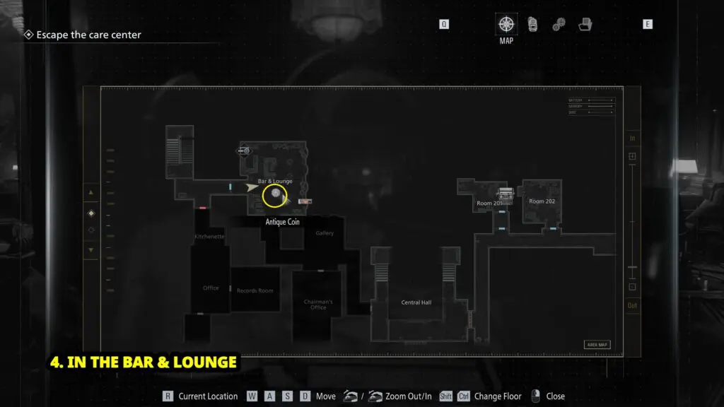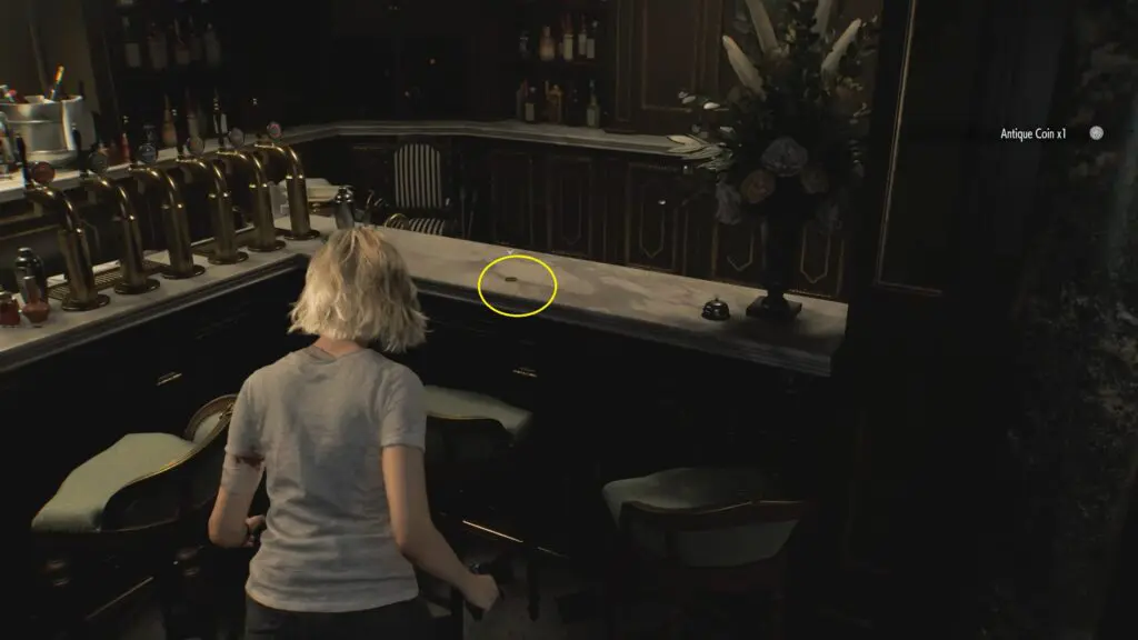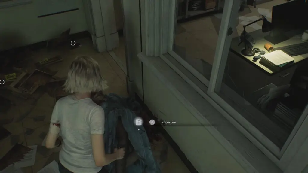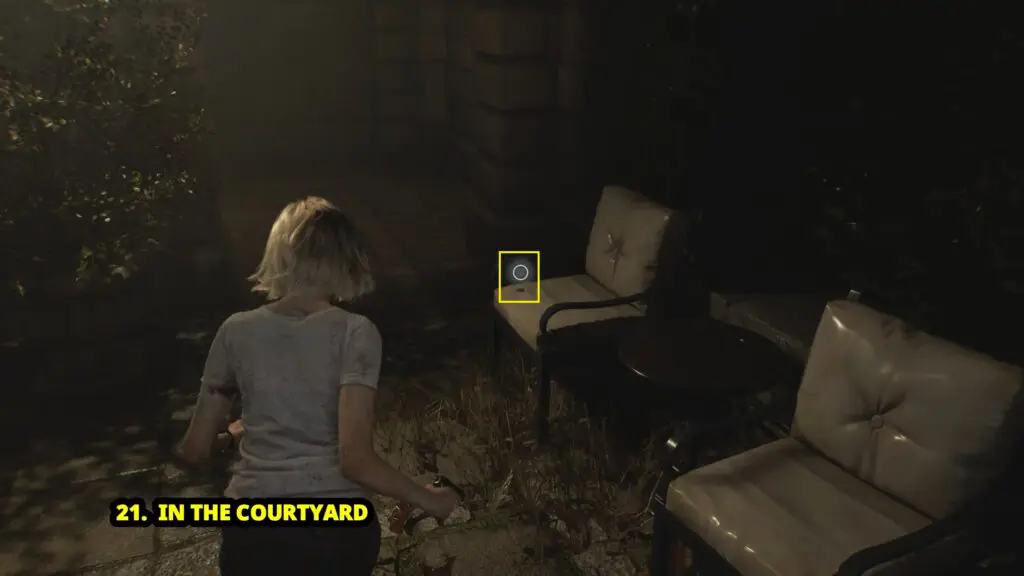 The last Antique Coin is in the Courtyard. You can get it much later in the story, after you escape the Care Center Basement and collect all three Quartz items. In the Courtyard, look below the stairways. The coin is on the chair below the stairway.