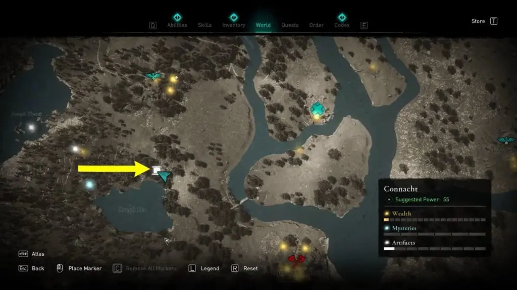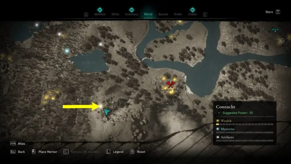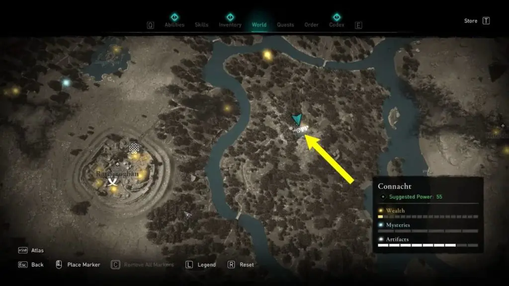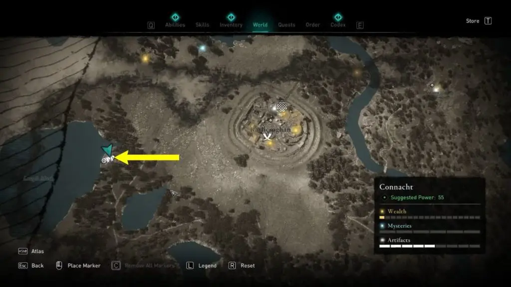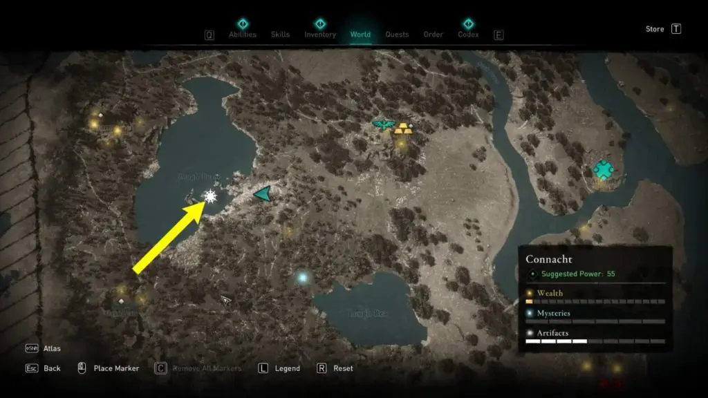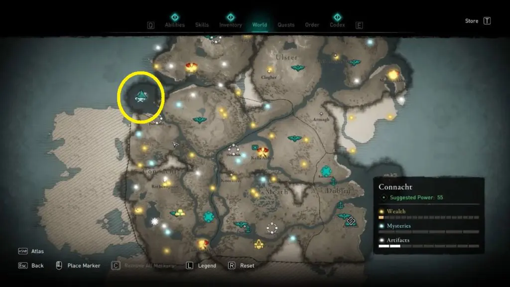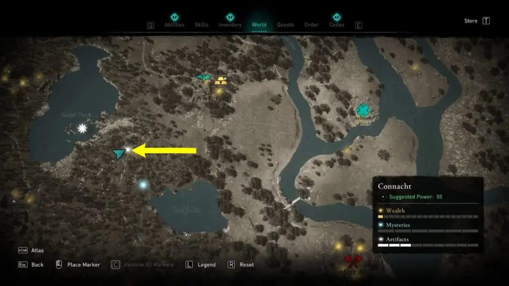 This Treasure Horde Map can be found between Lough Rea lake and Lough Tuam lake. You can find the map near a small sacrificial altar crevice in some rocks that hide the treasure map.