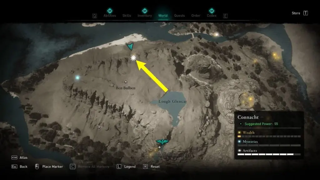 It is located in the northern area of Connacht, In the mountain area of Ben Bulben. Scan the pit to locate the Cursed symbol location and shoot it.