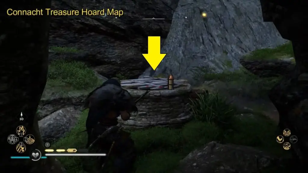 Treasure is on a small island to the North of Connacht and southeast of Port Auley. You need to find a well and destroy the wood covering, jump down to claim the treasure.