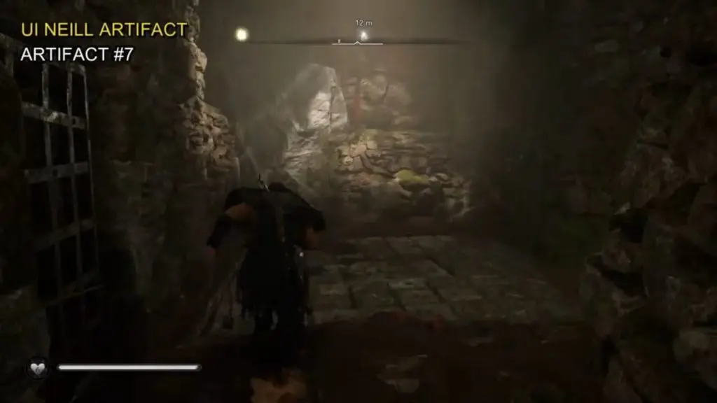 Head inside the underground area. At the end Artifact is behind the wall blocked with a wooden panel, Use a fire arrow to blow the wall or get a fire barrel from the adjacent room by climbing the all.
