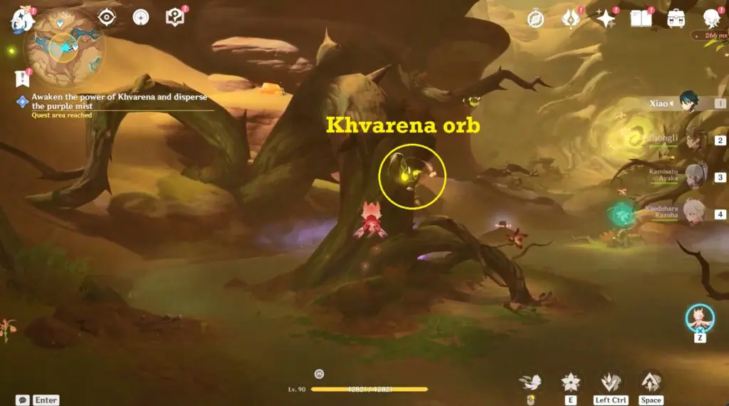 To begin, players should allow Sorush to approach the Khvarena orb by navigating through the thorny branches. Once Sorush is in position, uses her power to awaken the Khvarena. As Sorush awakens the Khvarena. The game will initiate a 180-second time trial using Sarush’s ability to eliminate the defiled entities.