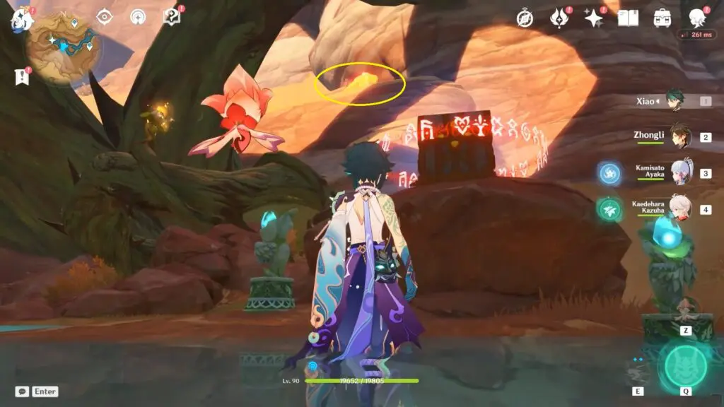 This Seelie is not trapped in the purple mist like the others but instead trapped inside an orange crystal on the south side above the ground level. To free the Seelie, players can utilize Sarush’s skill by picking up a nearby Nirodha Fruit and hurling it at the crystal