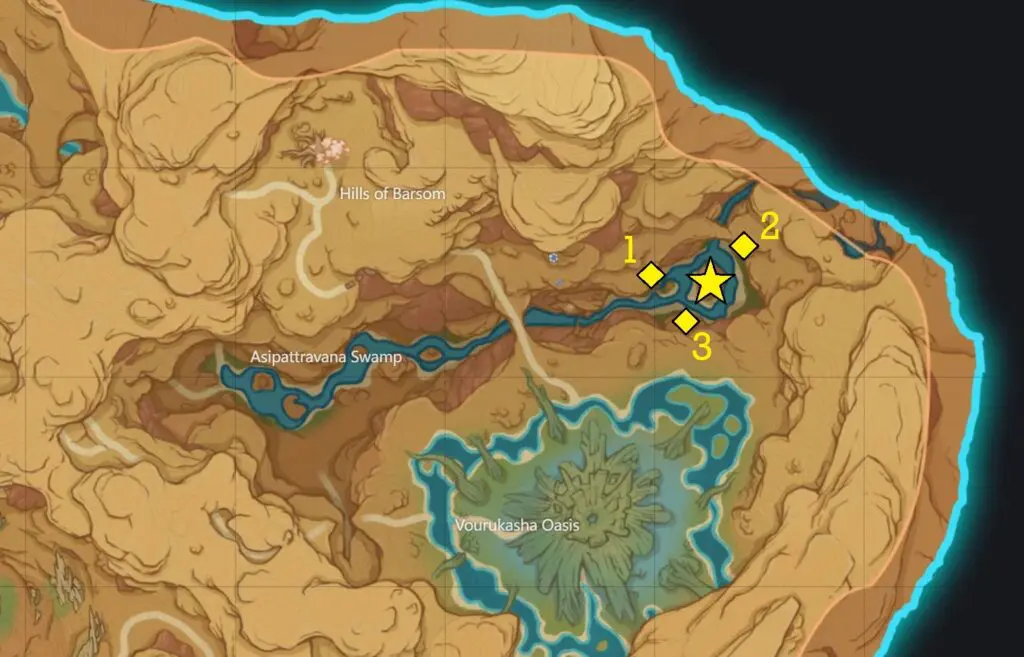 This guide shows you how to get all the Luxurious Chests at Asipattravana Swamp in the game of Genshin Impact 3.6. There are two Luxurious Chests available in this region.